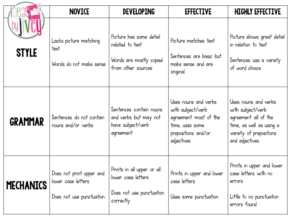 This was the rubric specifically for K-2 students in the areas of style, grammar, and mechanics: