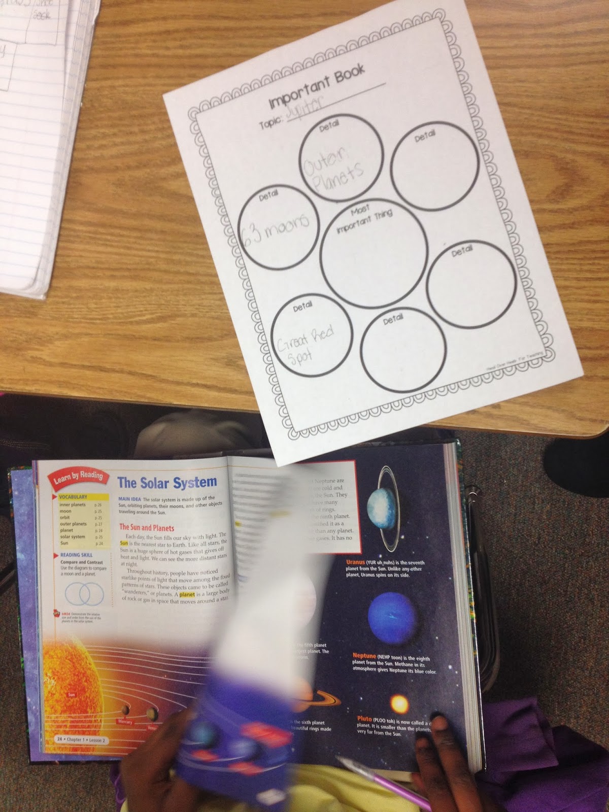 Students used their Science textbooks to find details about a planet of their choice. Come back next week to see their final published pieces! :o)