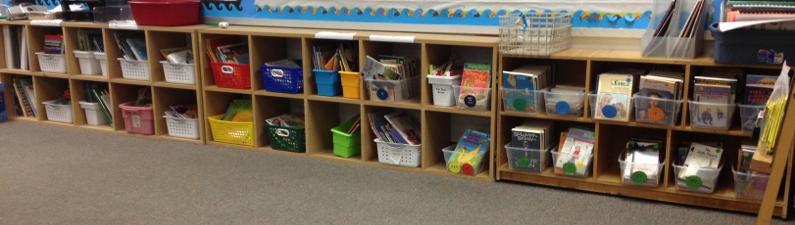 Yup, I made them. Awesome, right? 😛 They were originally made to be bookbag cubbies because my first year teaching, I didn’t have hooks in my room. These suckers have lasted for a long time, even after being moved from classroom to classroom and school to school! I have stacked them on top of each other before, but I prefer them like this because they fit perfectly under the bulletin board so it saves my wall space. My book collection *might* be a bit on the hoarding side, but I just love books so much. Some of the books in my library are books from when I was younger, books from my younger brother and sister, books that I’ve purchased, and then gotta love Scholastic Book Points! The books are leveled by F&P (what my school uses) so they can access their instructional level easily.